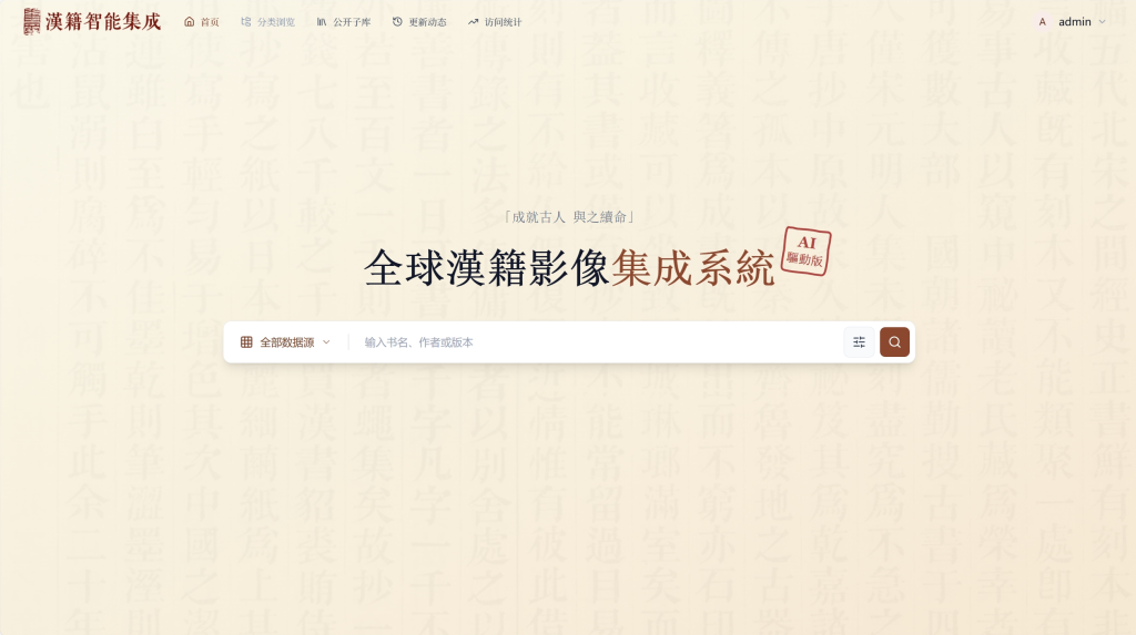 全流程AI驅動的全球漢籍影像集成系統(AI驅動版)完成第一期研發,已經開始上線內測。
